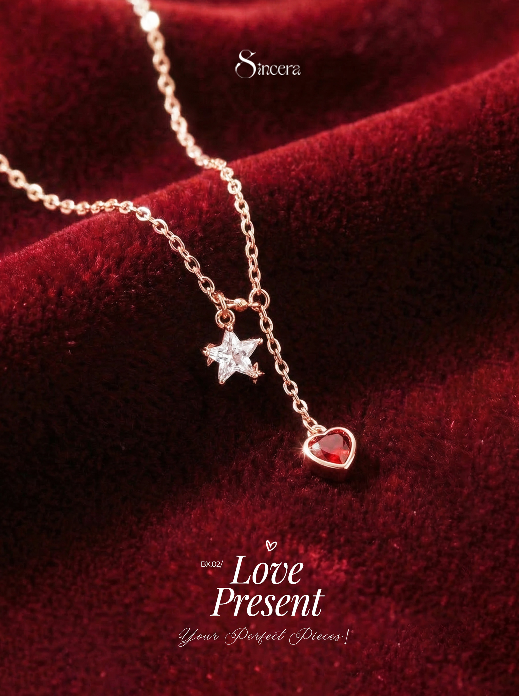 Dây Chuyền Sincera Star Heart Đá CZ | Bạc s925